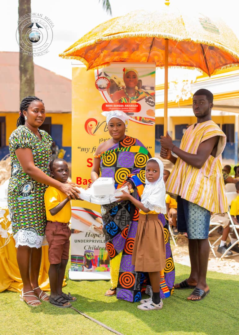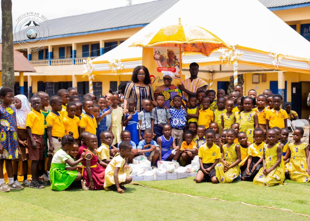 In the town of Asamankese, a gentle breeze rustled through the leafy streets as the morning sun rose, casting a warm glow over the market and the humble schoolyards. Today was a special day for the children of Class One, and for the people who cared about their futures. Kyidomhemaa of Asamankese, known to the community as Nana Dansoa Amamaah , had a plan to mark a momentous occasion: the first day of school for many young learners.